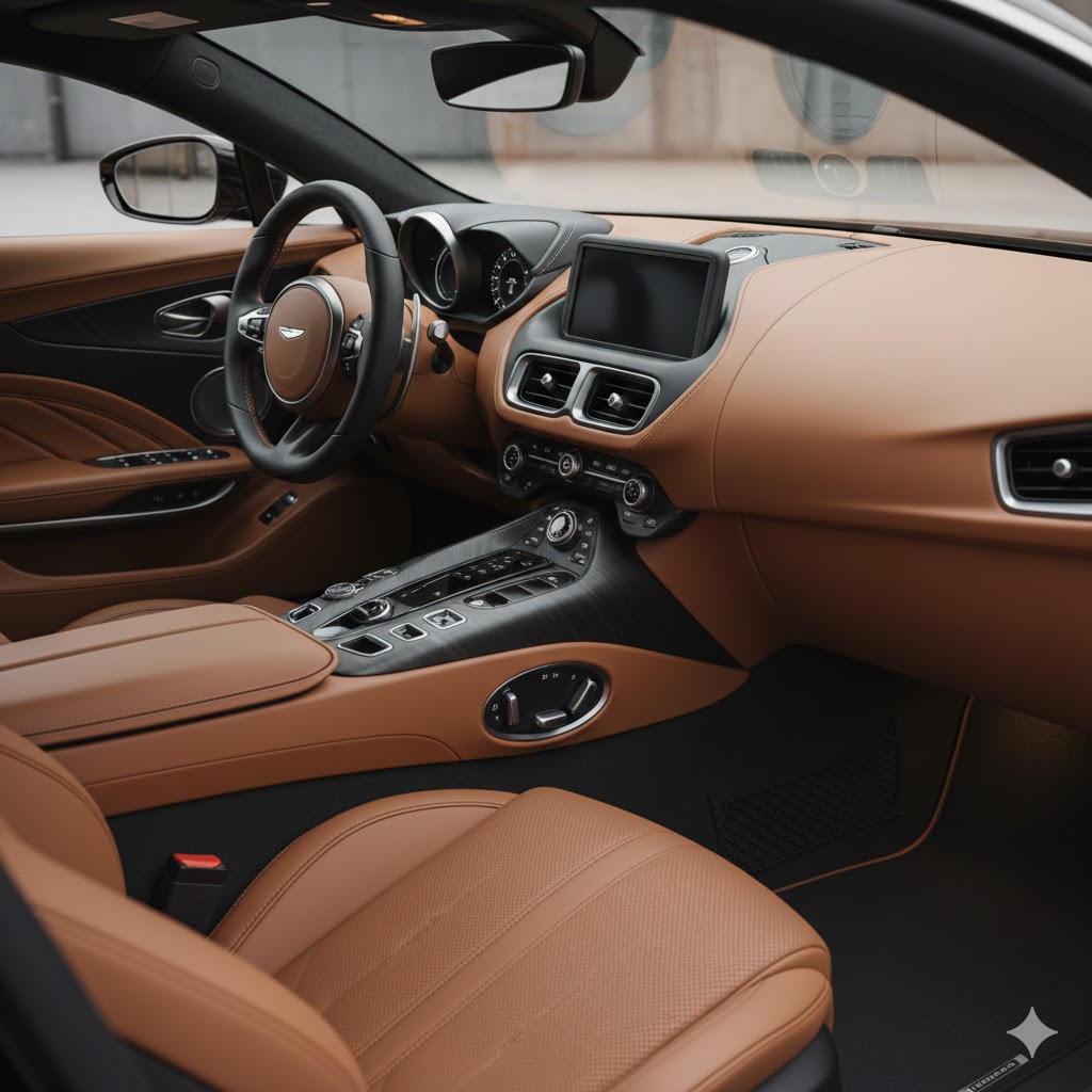 Dashboard tampil bersih dan futuristik dengan layar infotainment 10,25 inci yang kini sepenuhnya dikembangkan internal, bukan lagi dari Mercedes seperti DB11. Sistem ini mendukung Android Auto dan Apple CarPlay wireless.